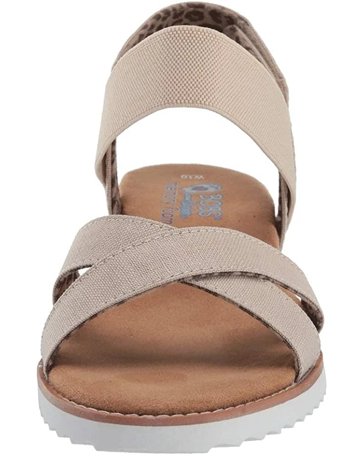 - The BOBS from SKECHERS® Desert Kiss – Secret Picnic espadrille sandal will perfect your weekend-ready ensemble with a woven linen fabric upper, open toe, and jute-wrapped wedge heel.