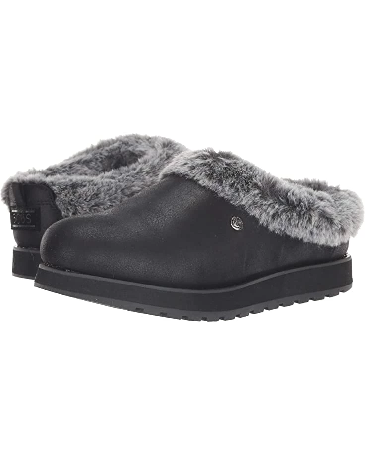 - The BOBS from SKECHERS® Keepsakes – R E M clogs offer plush comfort with a leather-textured microfiber upper, slip-on styling, and soft faux-fur collar trim.