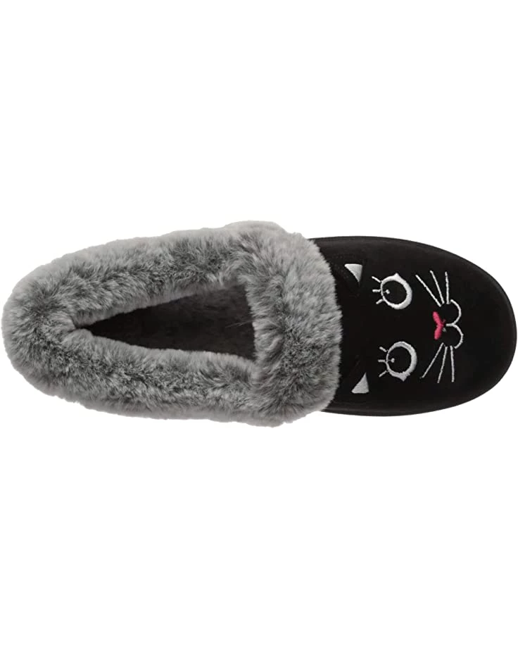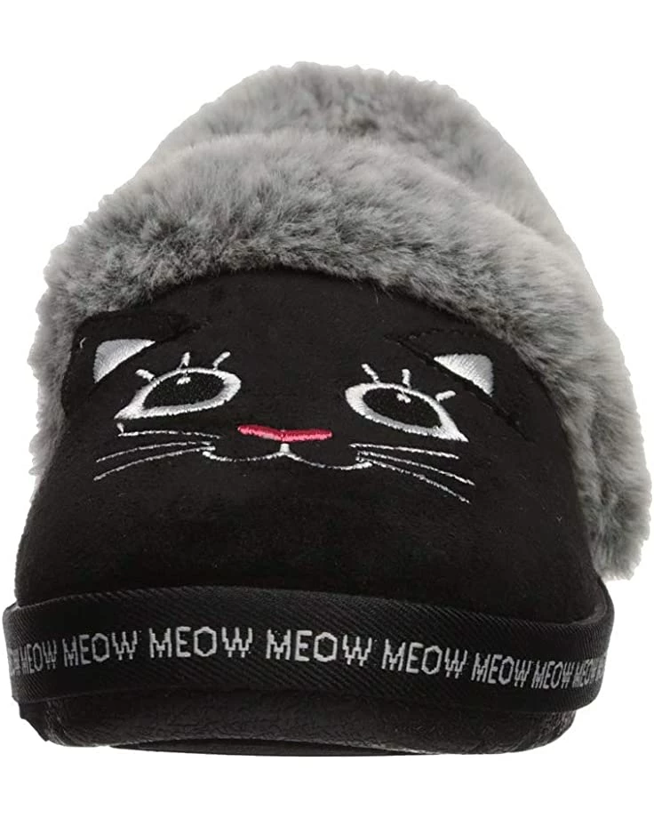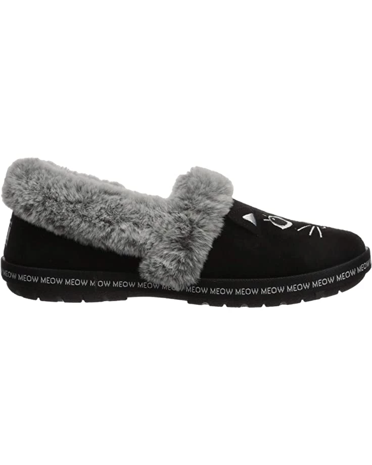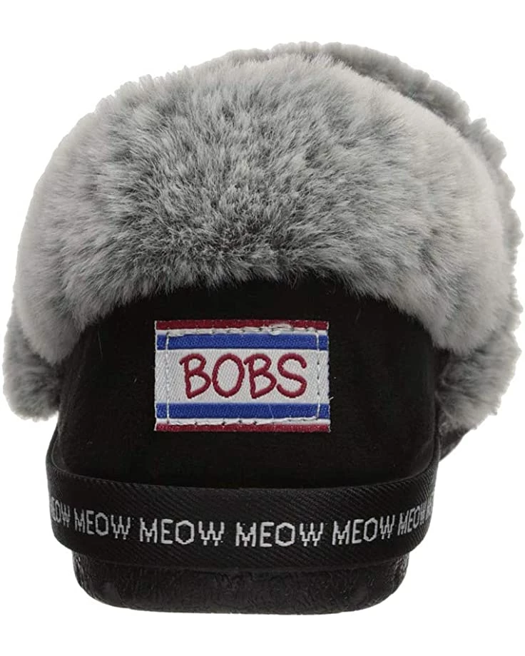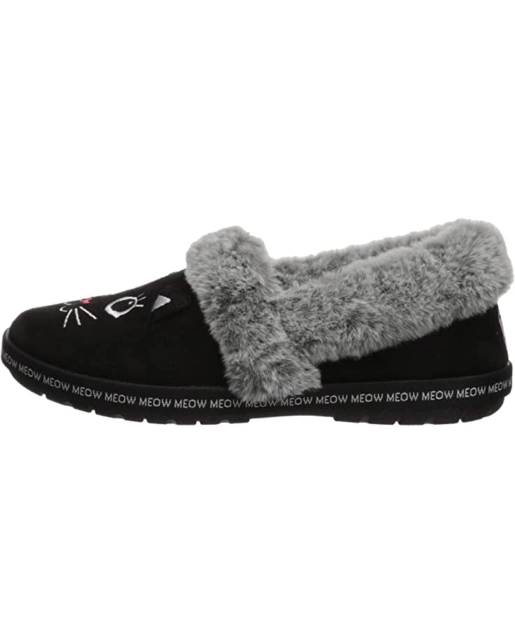 - A plush faux-fur collar, embroidered cat face design, and slip-on entry make the BOBS from SKECHERS® Too Cozy slipper the perfect style to keep you warm and comfortable this cold-weather season.