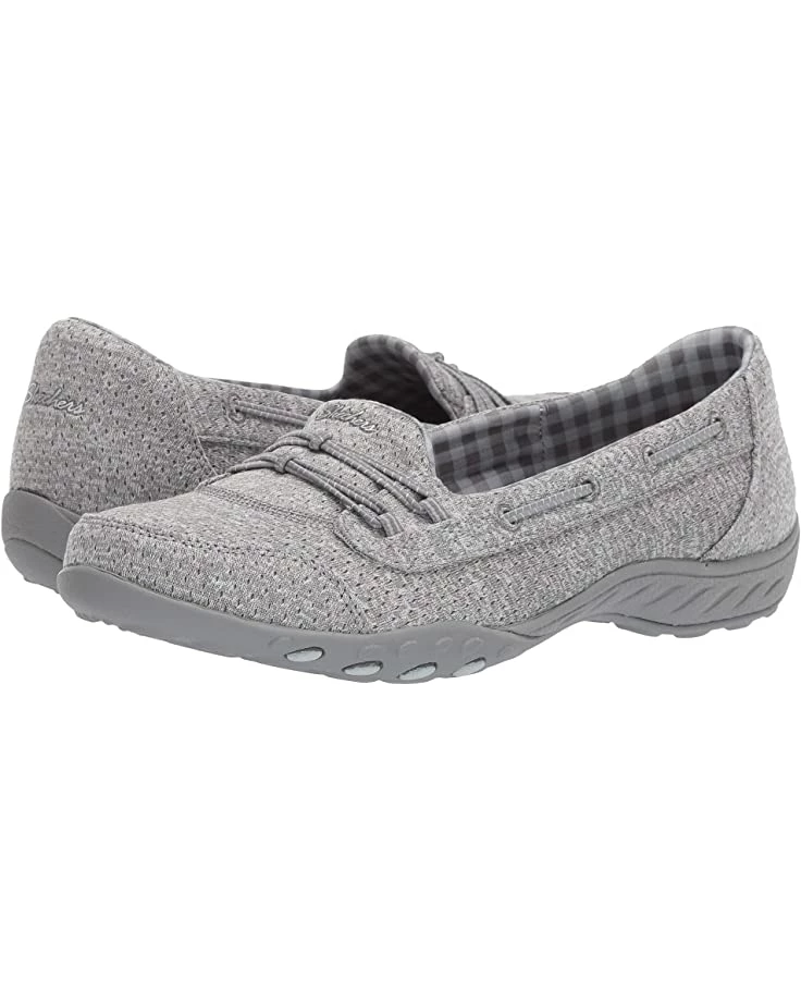 - The SKECHERS® Breathe-Easy – Good Influence slip-on sneaker will invigorate your casual look with a jersey-knit fabric upper, heathered finish, and bungee laces at the instep and collar.