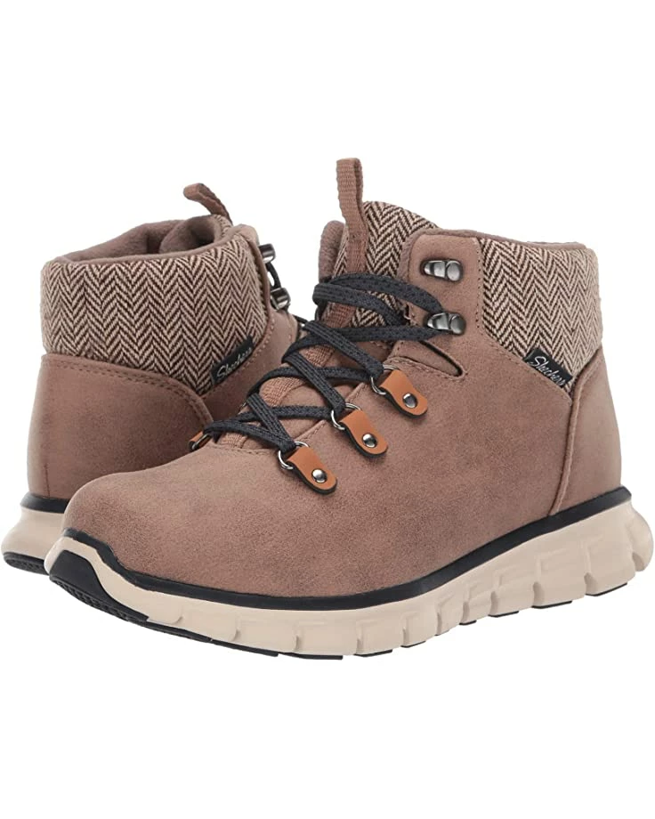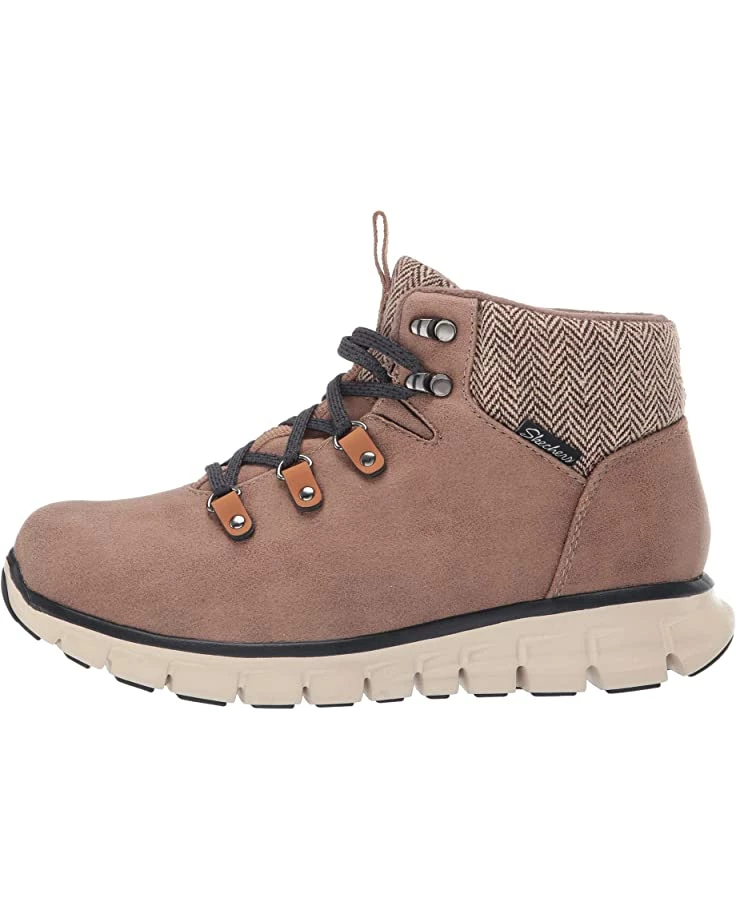 - The SKECHERS® Synergy – Mountain Dreamer boot will keep your style pristine when you embrace the elements with an ankle-height design, water resistant finish, and mixed textures throughout.
