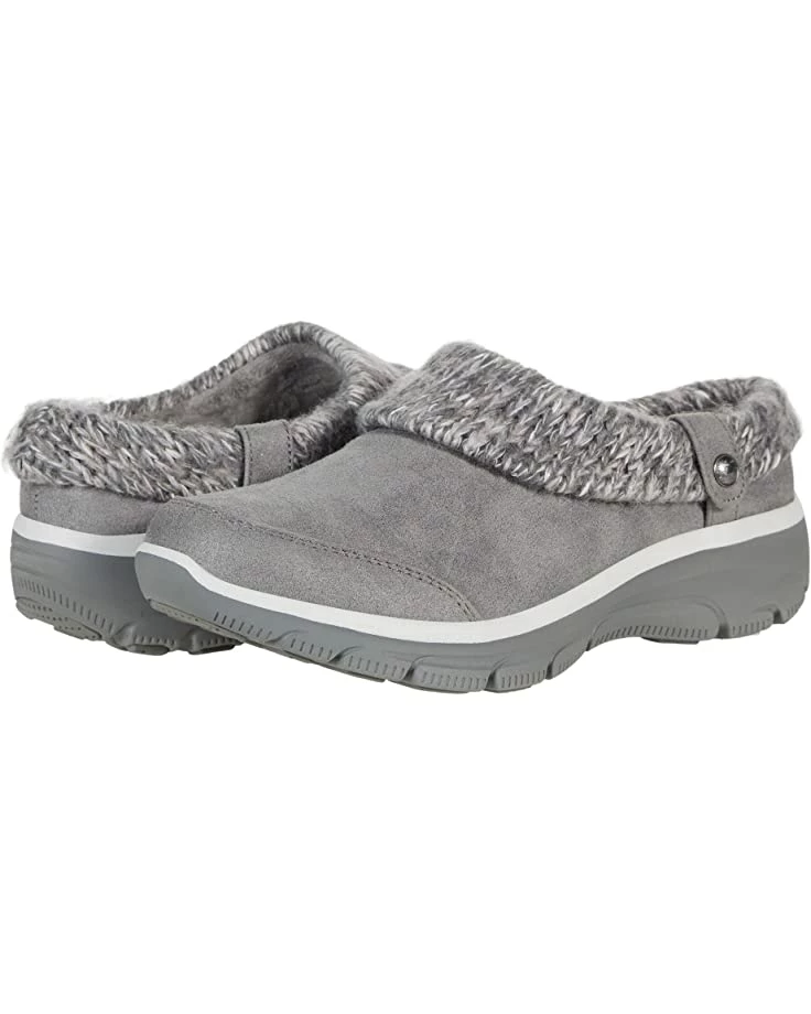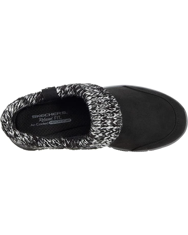 - The SKECHERS® Easy Going – Good Duo slipper will simplify your casual cold-weather look with a water-resistant microfiber upper, suede-like texture, and a foldover collar with a sweater-knit fabric trim.