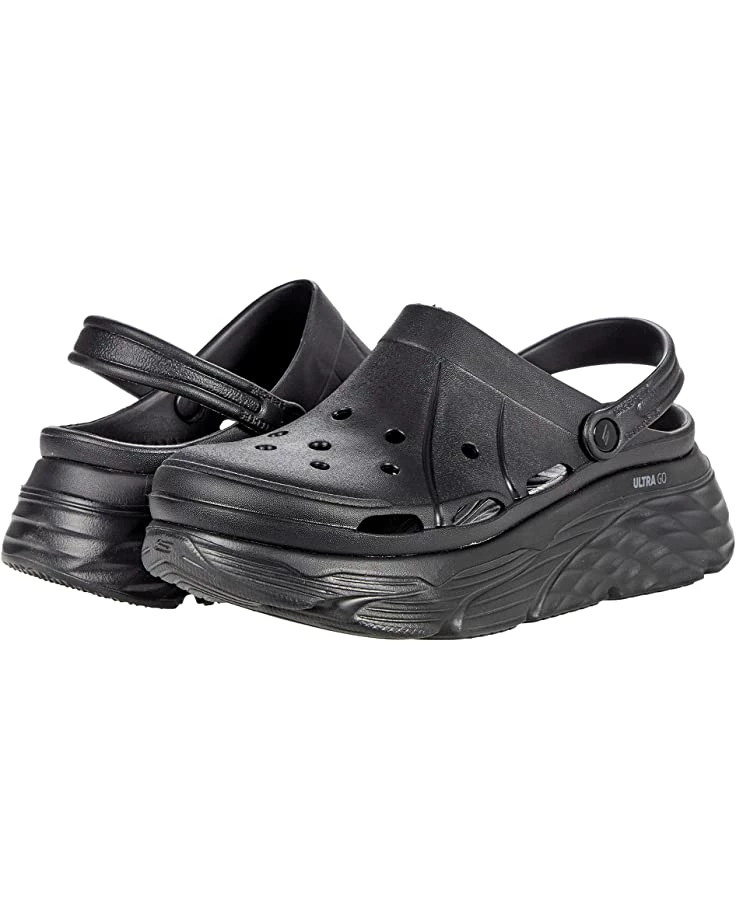- Hit the beach in cushioned comfort! Featuring an ULTRA GO® cushioned platform midsole, convertible heel strap, and water friendly construction- the SKECHERS® Foamies Max Cushioning High Tide Clog is perfect for any type of fun in the sun.