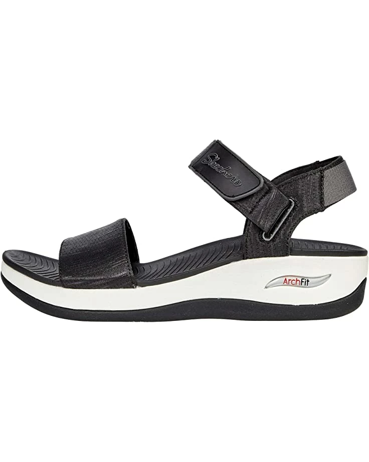 - Appreciate the support and sunny style of the SKECHERS® Arch Fit Sunshine – Quarter Strap. Endless adventures await in this super stylish sandal as it has materials that maximize comfort and give great support for all day wear. They pair well against outside elements so stride in confidence and style.