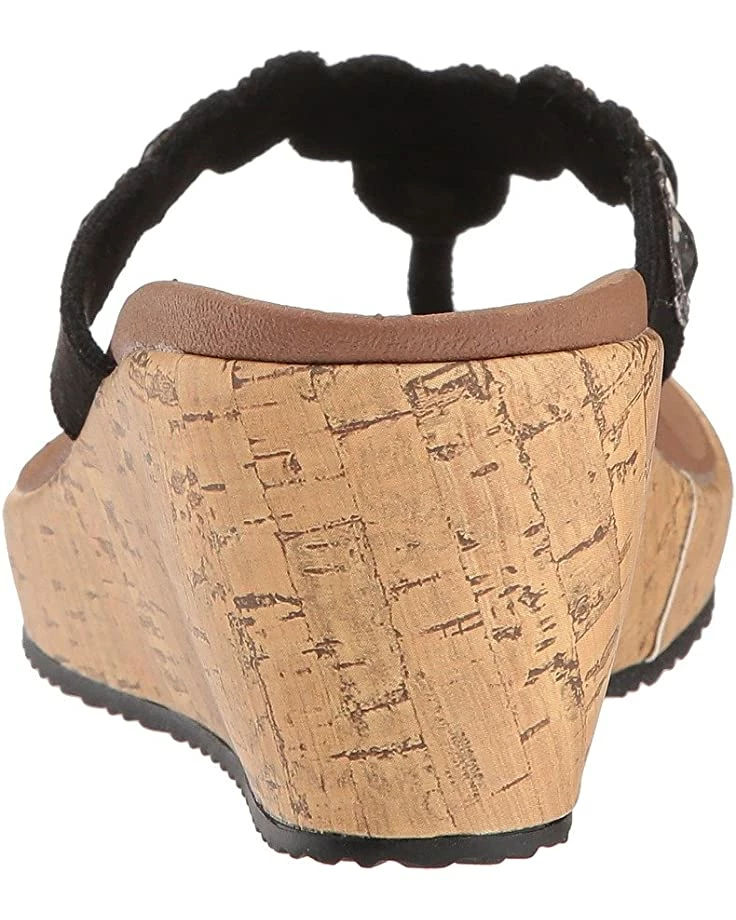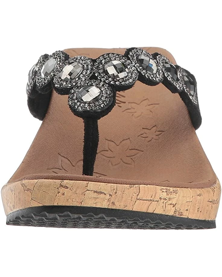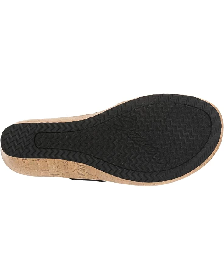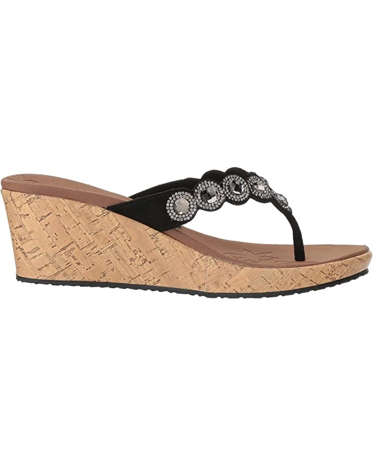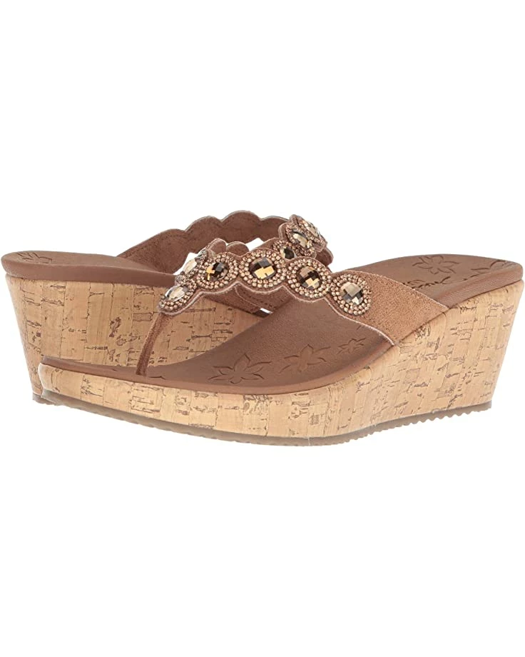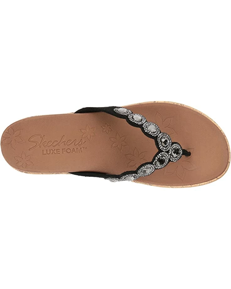 - The SKECHERS® Beverlee – Bizzy Babe sandal will add a dose of glam to your summer ensemble with jewel embellishments at the fabric upper, a thong-style silhouette, and cork-wrapped platform with wedge heel.