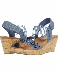 - The SKECHERS® Beverlee – Pretty Chic sandal will complement your summery-chic style with an open toe, sparkle finish, linen fabric upper, and a cork-wrapped platform with wedge heel.