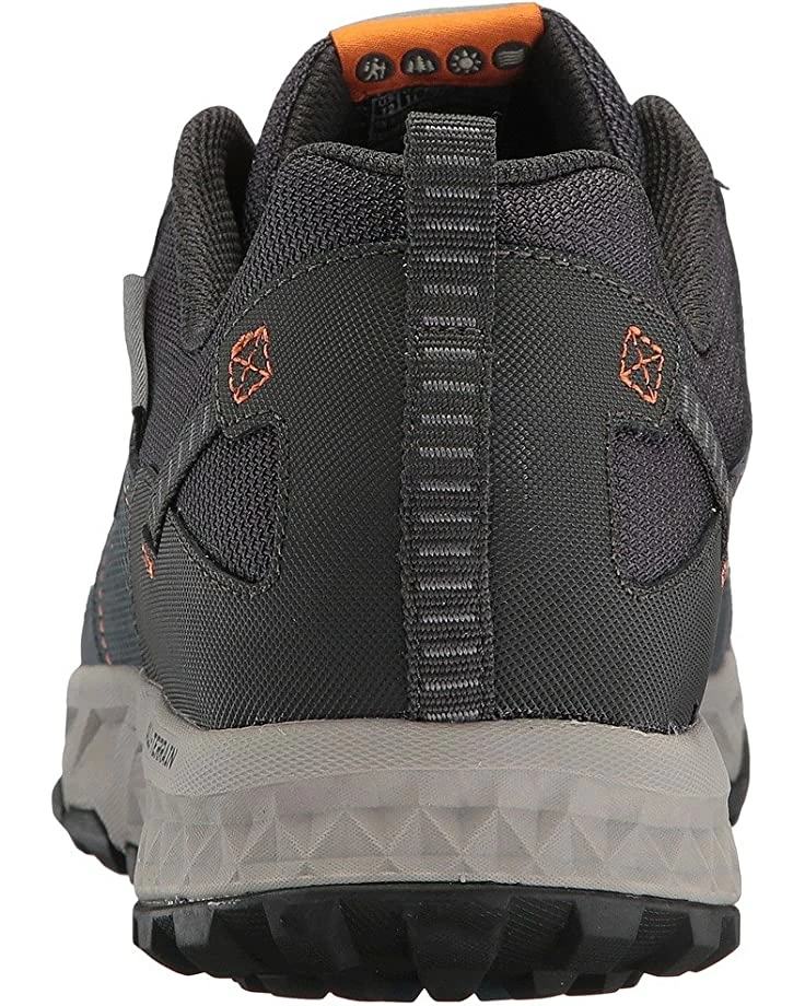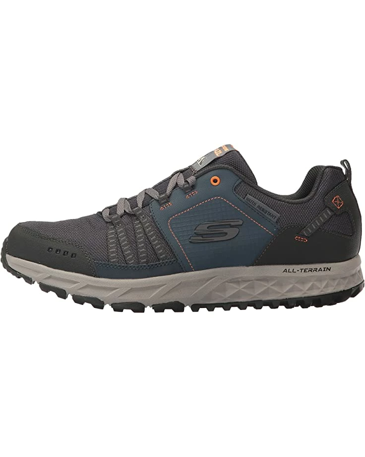 - The SKECHERS® Escape Plan hiking shoe will ensure that you escape the mundane and head to the hills for your next adventure with a water-repellent design, fabric and synthetic upper, and a sporty mid-height silhouette.