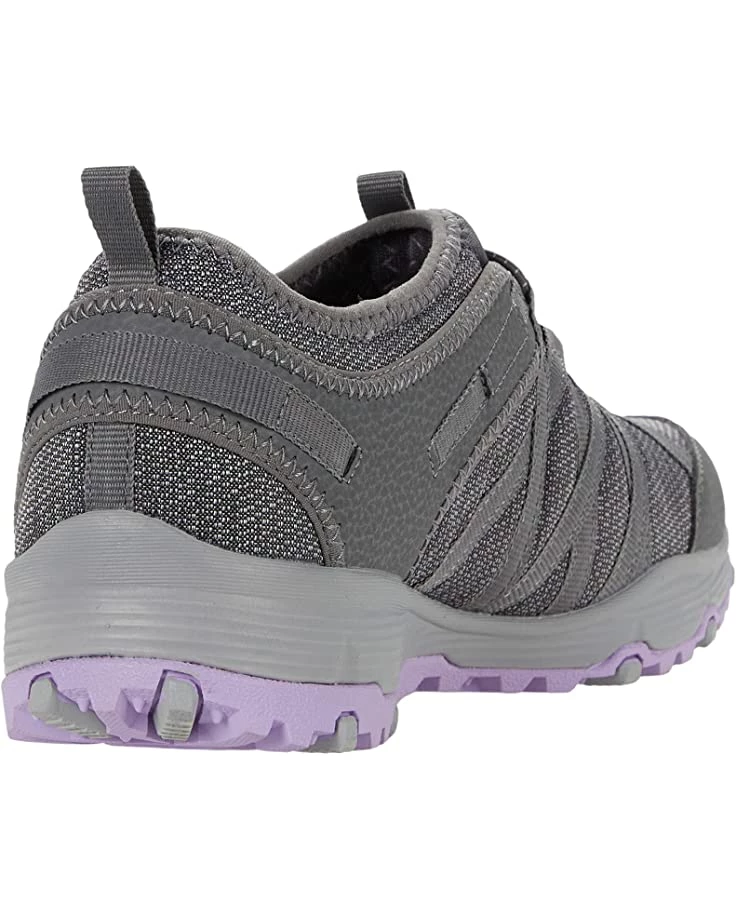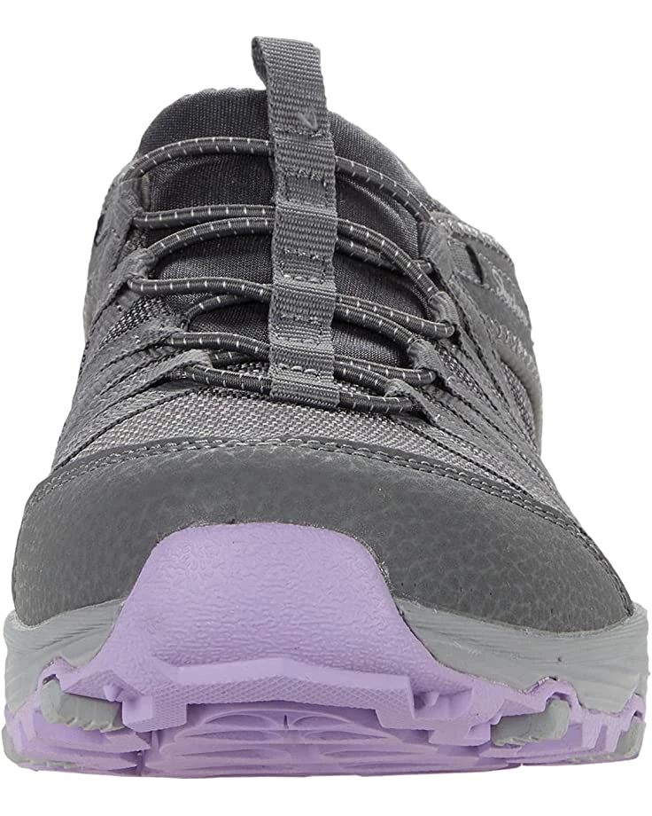 The shoe was so light! And I loved the grippy sole configuration — I bought them hoping to use them on moderate hiking trails. These shoes were my third try at finding shoes with a more aggressive sole, yet not so ultra wide as I have found many women’s hiking shoes to run. So … after all that, why did I return them? Only one reason: they were actually TOO comfy, being slip-on without a more solid upper foot and arch-top support that I get from traditional “tongue and tie” laced shoes. I need a sturdier foot support. These would be perfect side-walk walkers for the active user who has stronger ankles, and isn’t so much into “off-roading” with her foot gear.