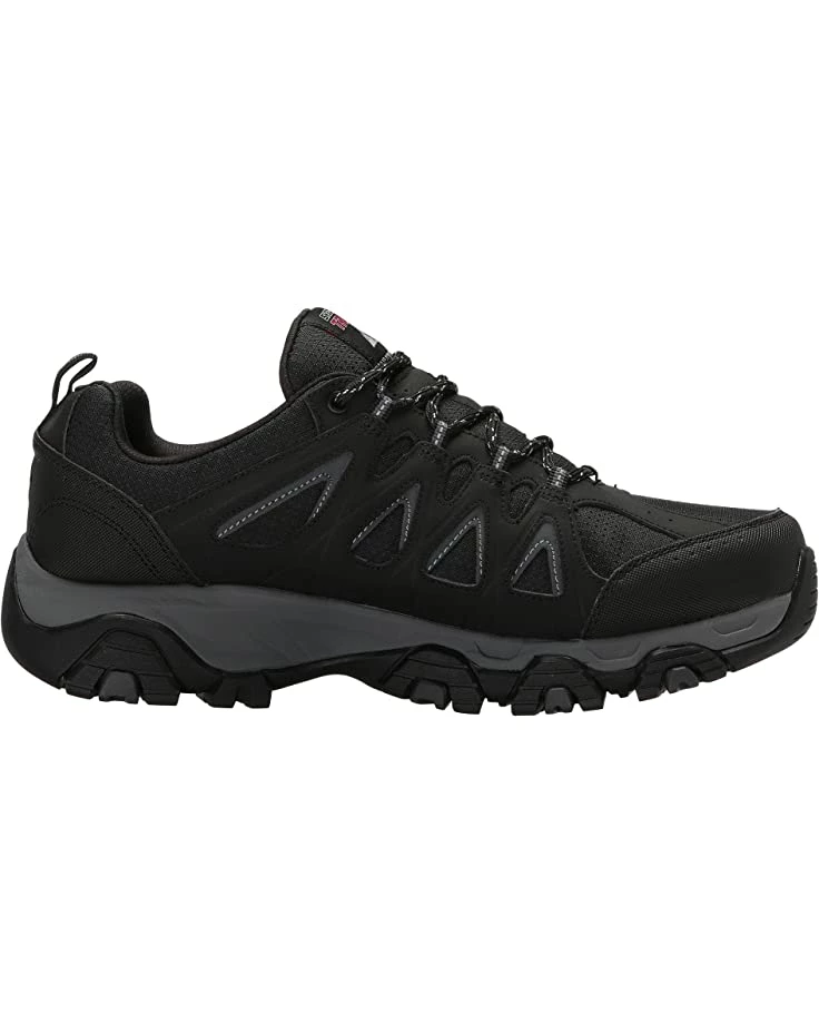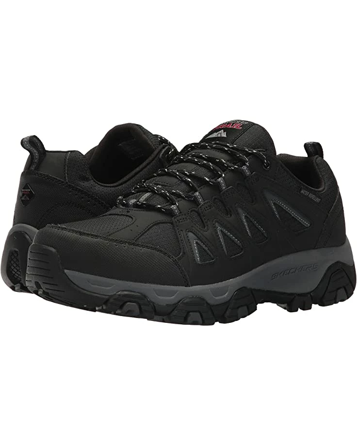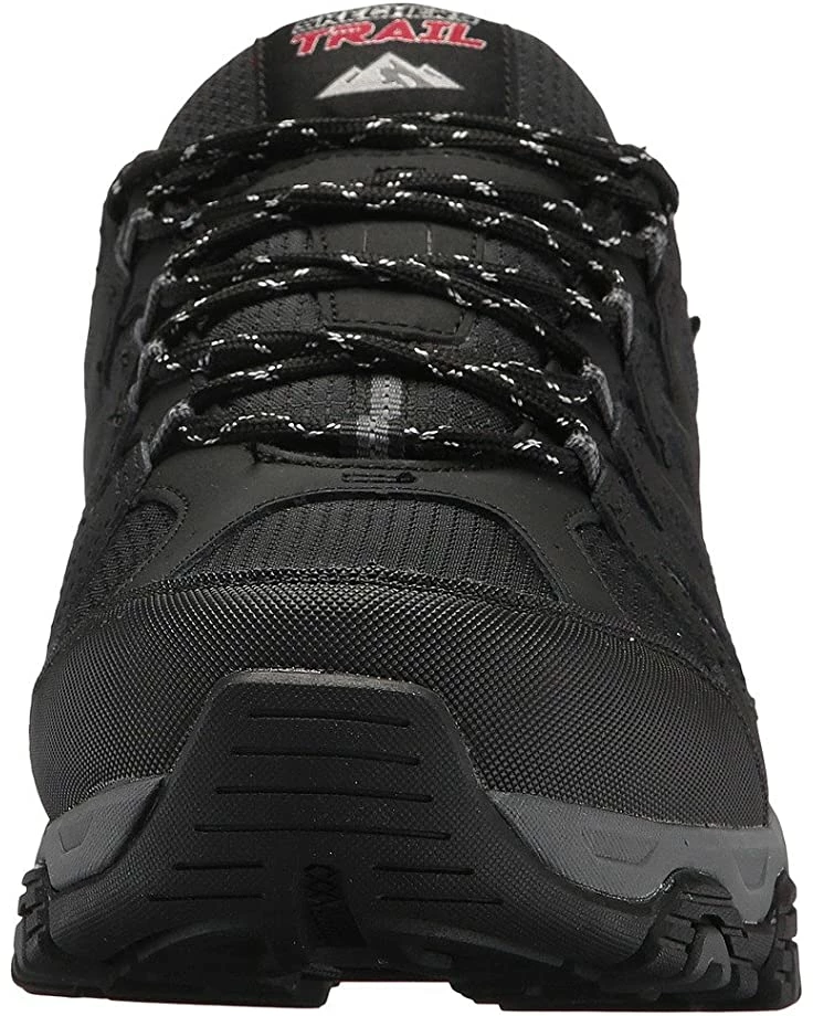 - The SKECHERS® Terrabite hiking shoe will ensure that your brave any terrain in sporty style with an action leather upper, durable synthetic overlays, mesh cooling panels, and a water-repellent design.