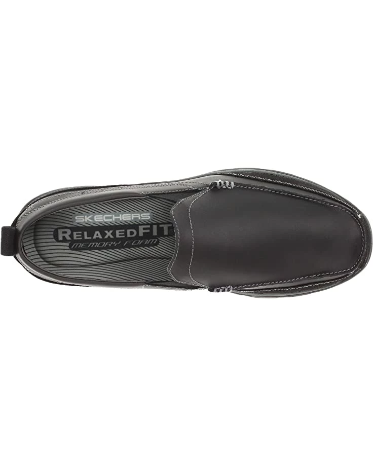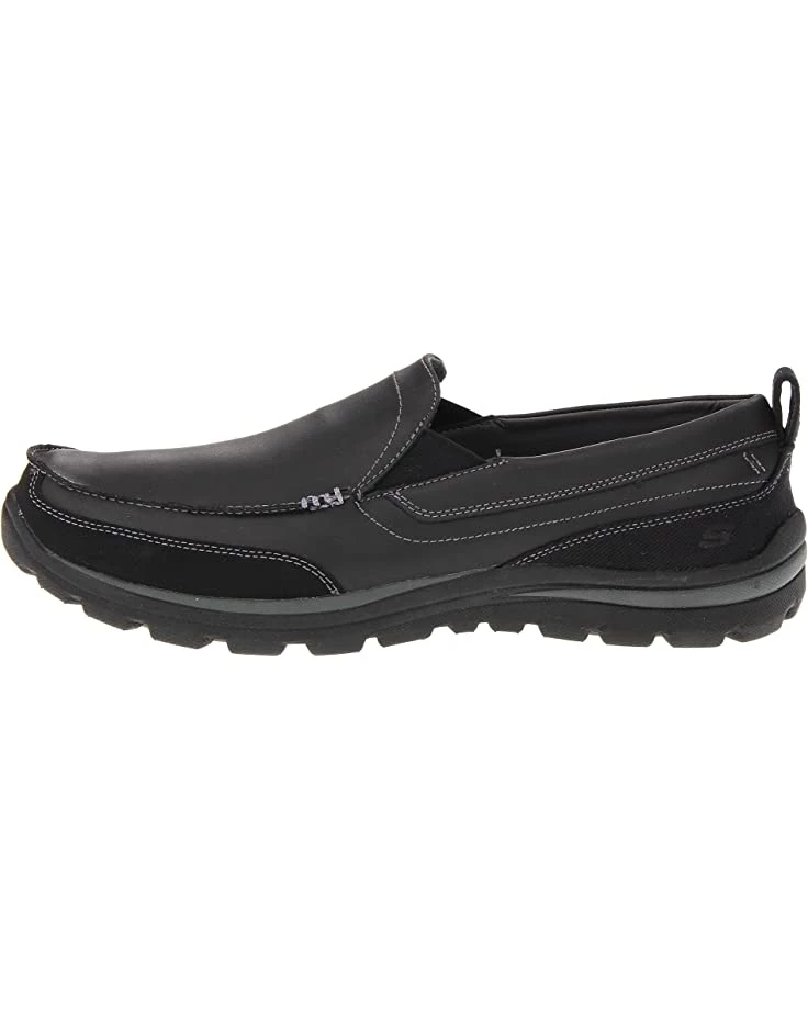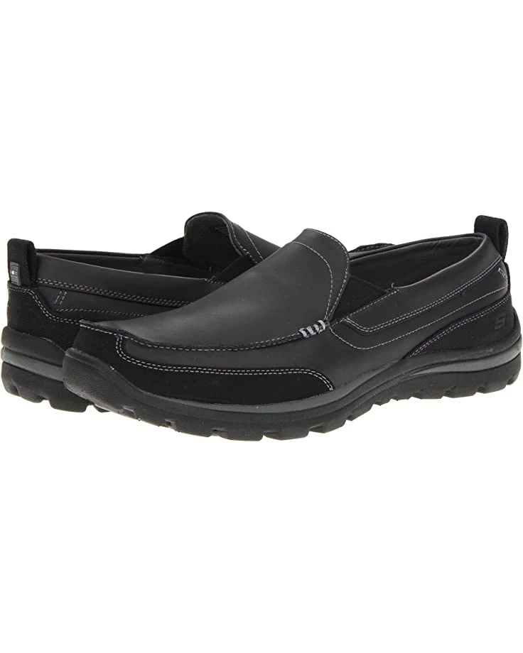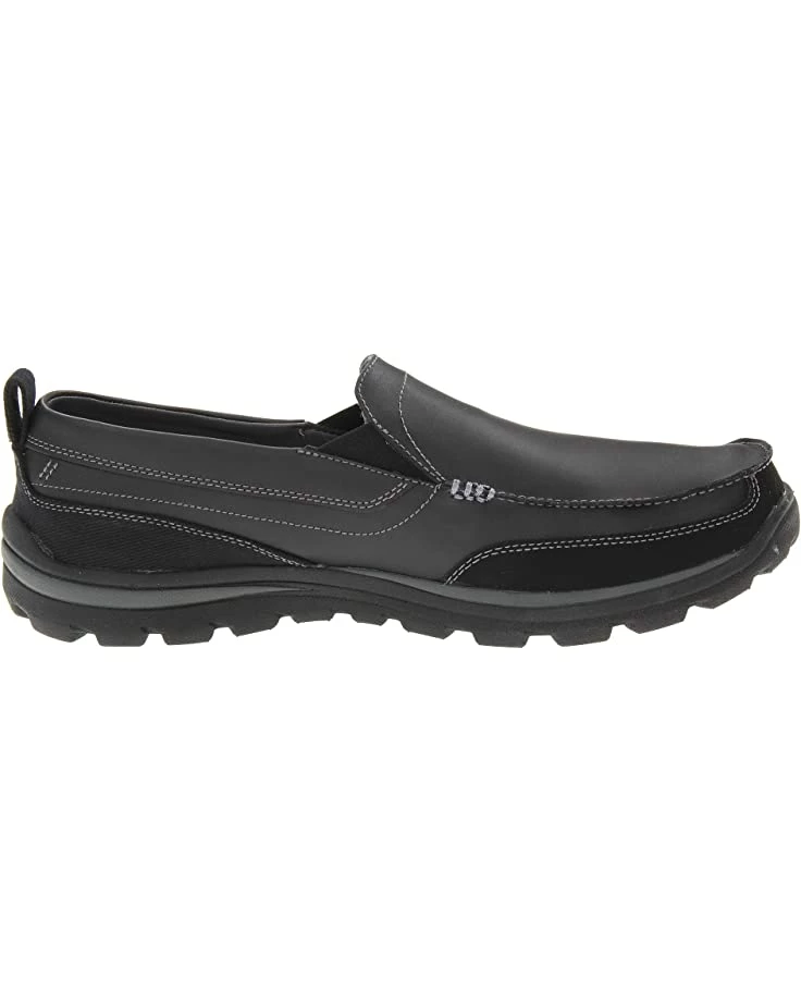 - The SKECHERS® Relaxed Fit Superior – Gains loafer fuses comfort and style with a mixed finish design, contrast topstitching, and optimal comfort features.