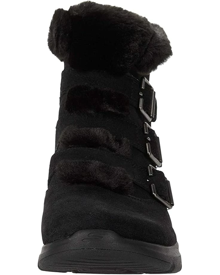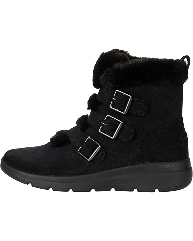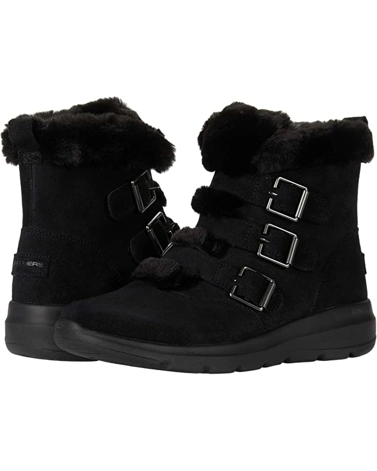 - The SKECHERS® Glacial Ultra – 144154 boot is the perfect choice to keep you warm and comfortable this season with a water-resistant finish, faux-fur tongue and collar, and an ankle-height design.