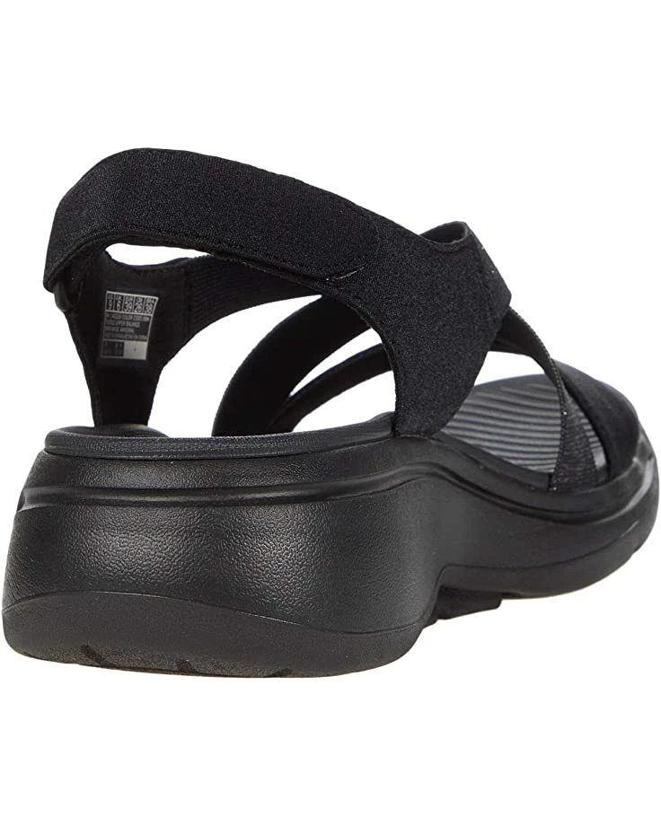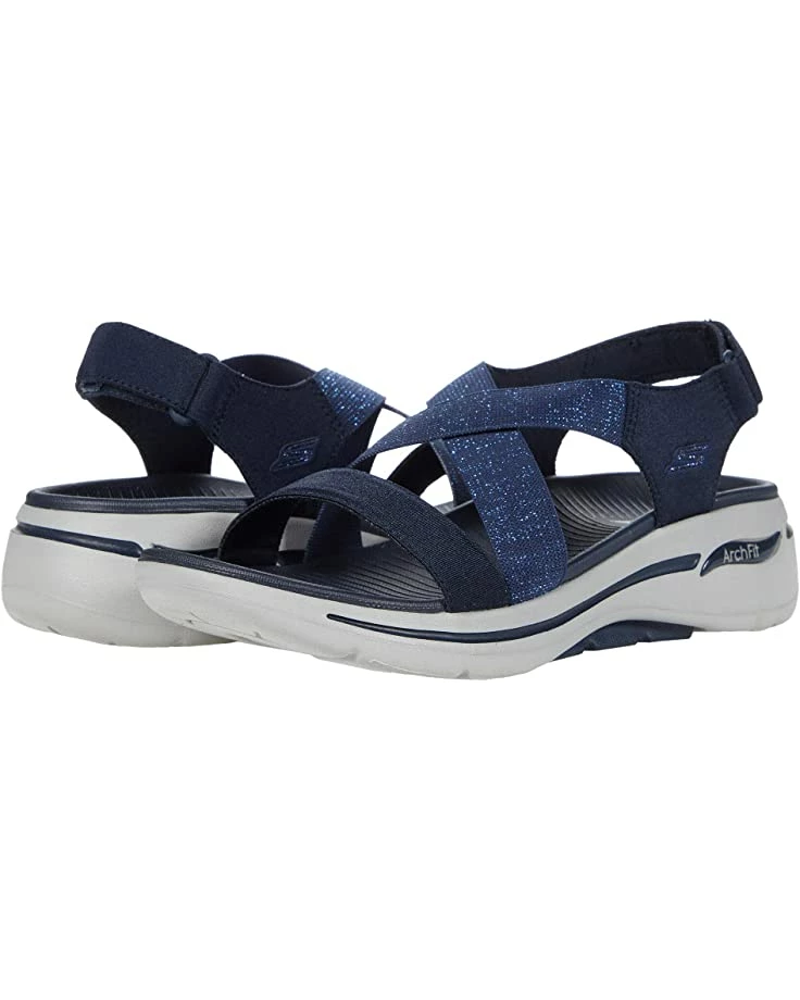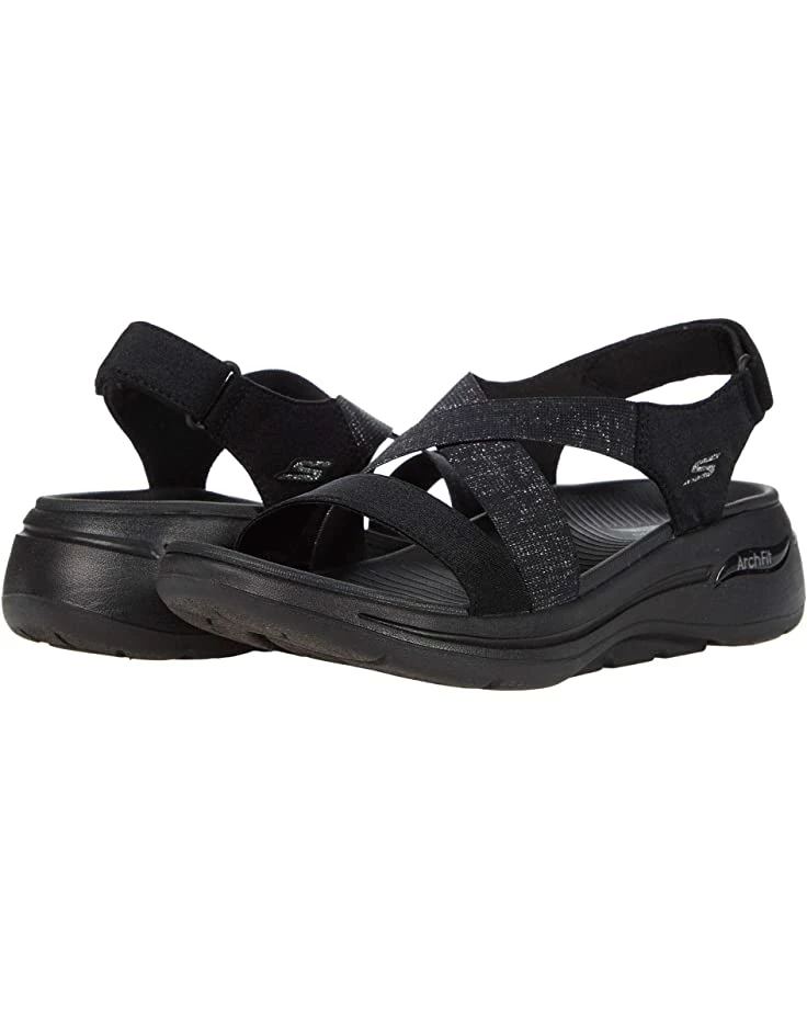 - The SKECHERS® Performance Go Walk Arch Fit Cross Band Quarter Strap sandal will add effortless comfort to your warm-weather look with easy slip-on styling, a durable textile upper, and stretchy, elasticized straps for perfect all-day wear.