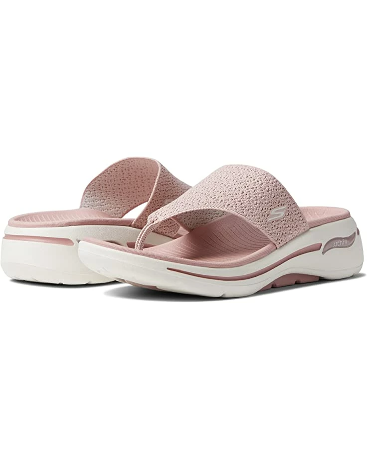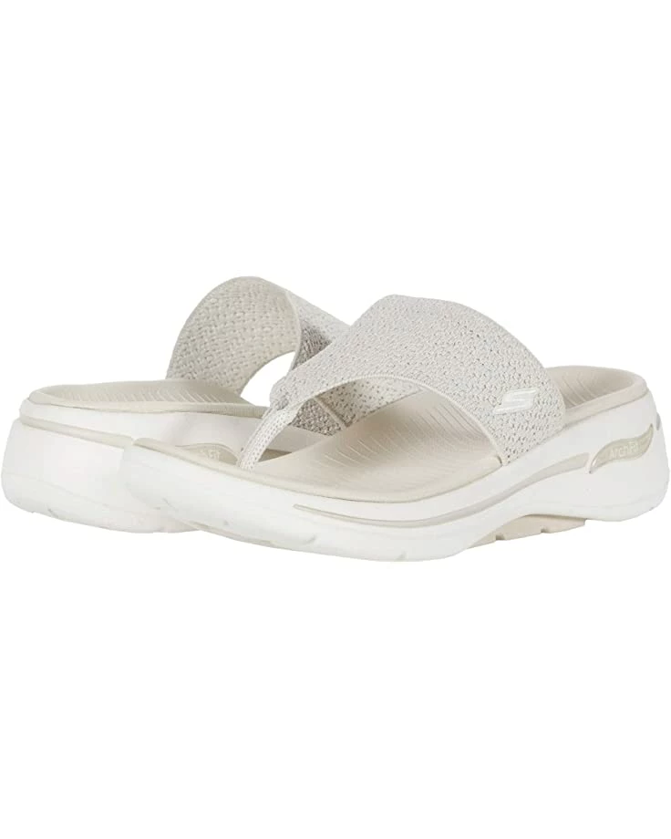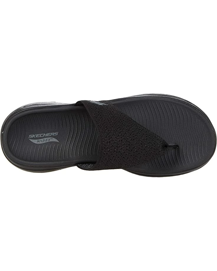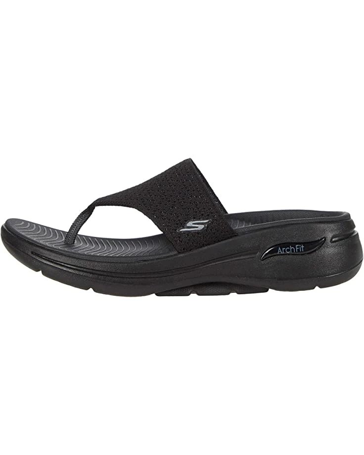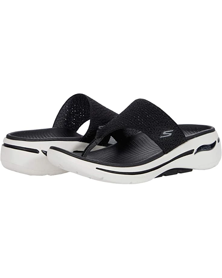 - The SKECHERS® Go Walk Arch Fit Sandal is comfortable technology to slip on and go. Knit fabric upper is textured for extra style.