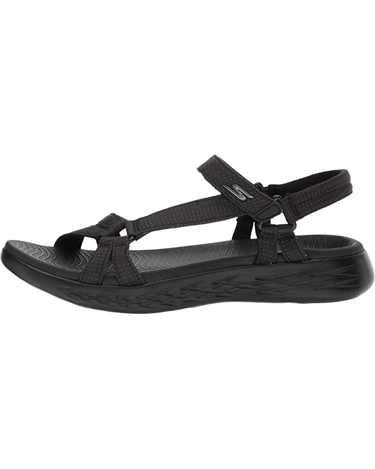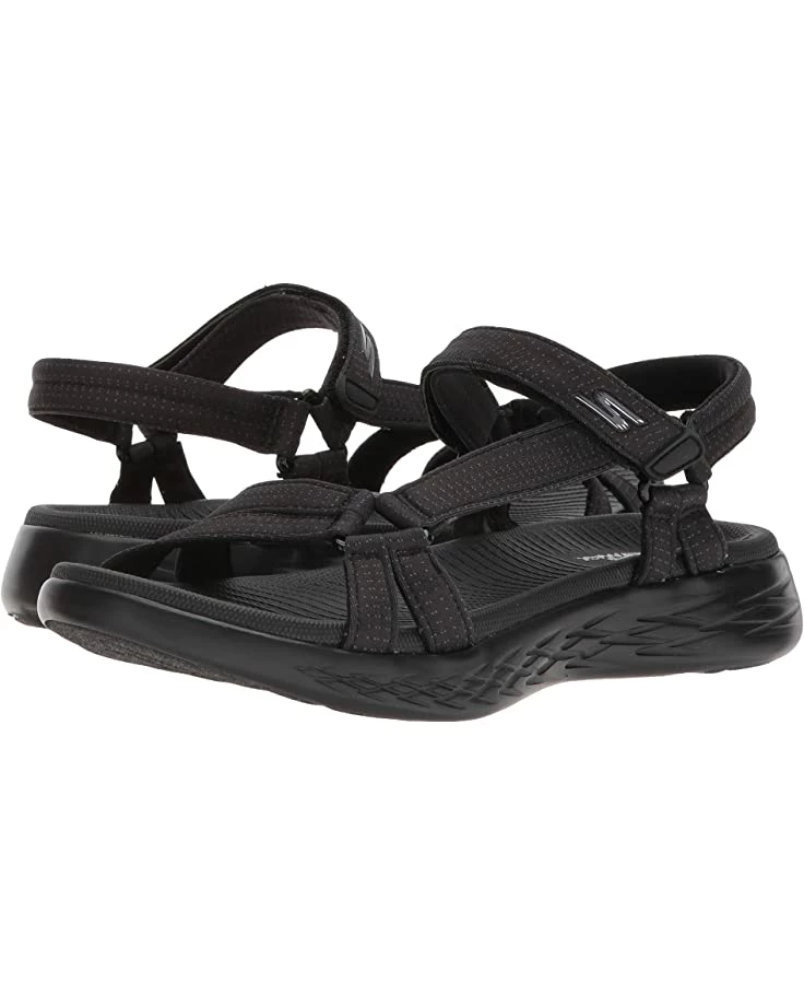 - The SKECHERS® On the GO 600 – Brilliancy sandal offers sporty style and premium comfort with a pique textured mesh fabric upper, open toe, and machine washable design.