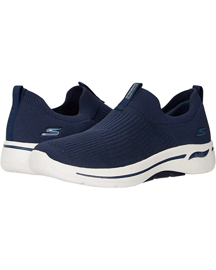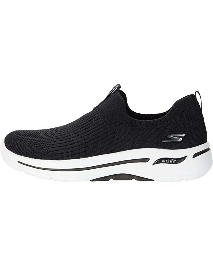 - The SKECHERS® Go Walk Arch Fit Iconic sneaker will make every walk a comfortable one with a stretch knit fabric upper, slip-on entry, and a machine washable design.