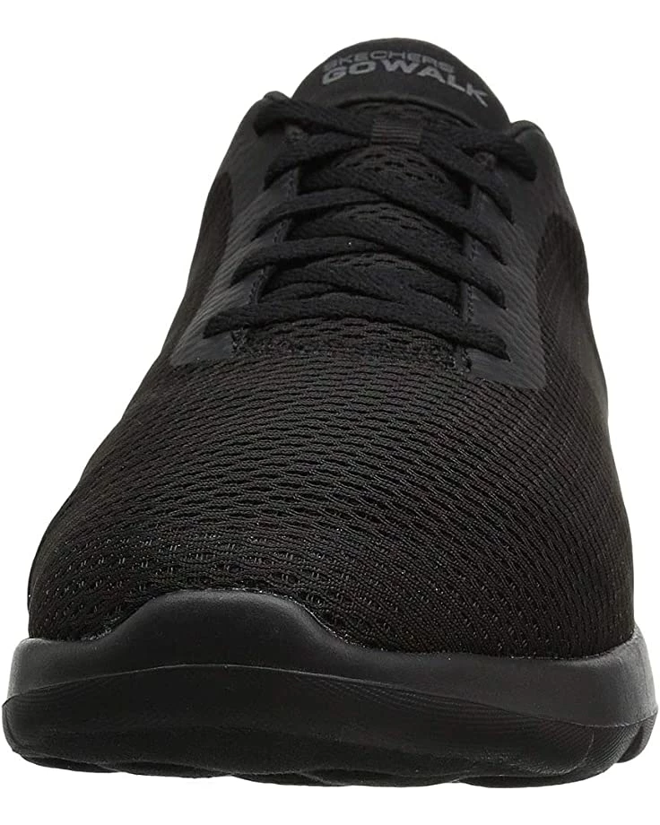 - The SKECHERS® Go Walk Max – 54601 sneaker offers maximum comfort and cushioning with an athletic design, a textured mesh fabric upper, and synthetic overlay at the laces for added durability.