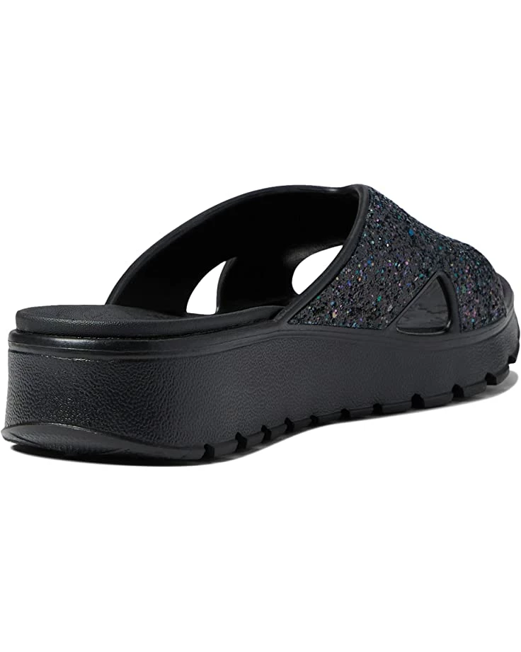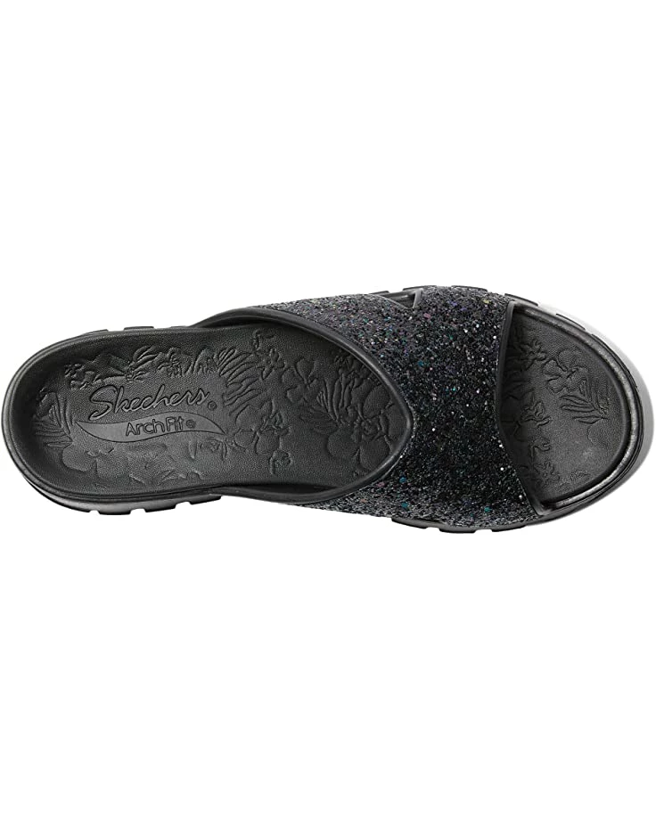 - Add some dazzle to your simple and casual style wearing the SKECHERS® Foamies Arch Fit Footsteps Glitter Cross Band Slide Sandals.