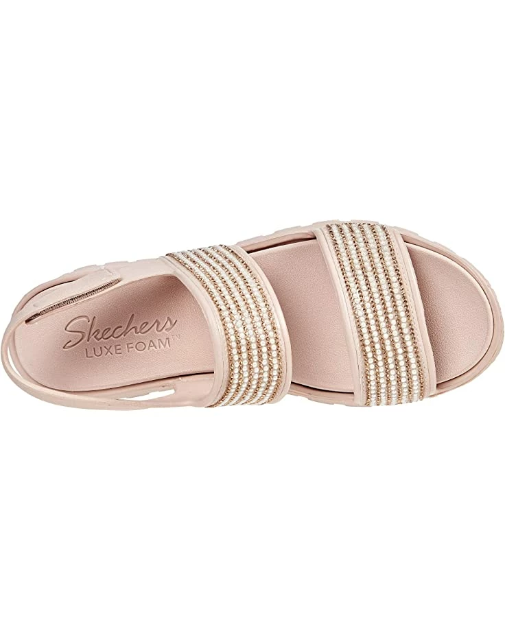 - Add a little glitter to your warmer weather aesthetic in the SKECHERS® Foamies Footsteps – How Extra, featuring a classic slip-on style sandal with hook-and-loop closures at heels. Available in three color options.