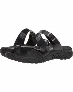 - The SKECHERS® Reggae – Caribbean sandal offers stylish comfort with a smooth leather-textured synthetic upper and strappy toe loop design.
