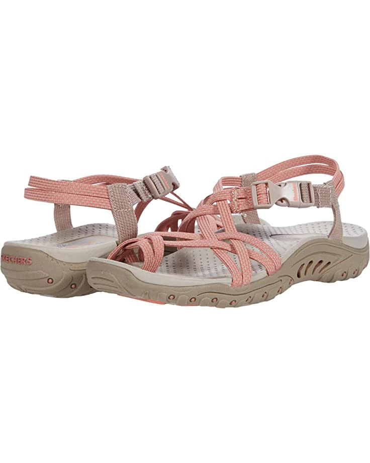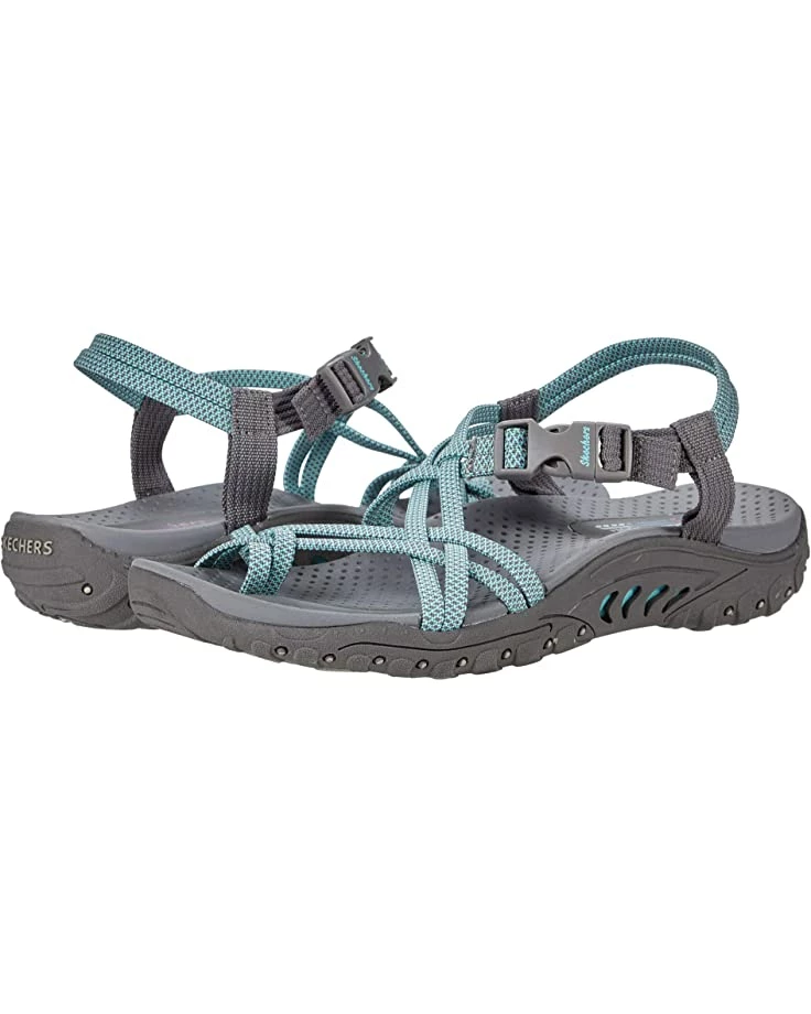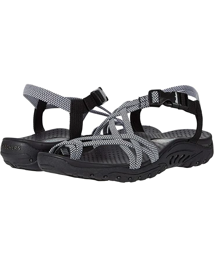 - The SKECHERS® Reggae – Irie Mon sandal boasts comfort and eye-catching style with a river-style design, woven straps, and an open toe.