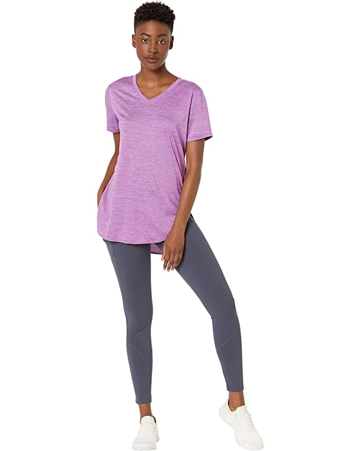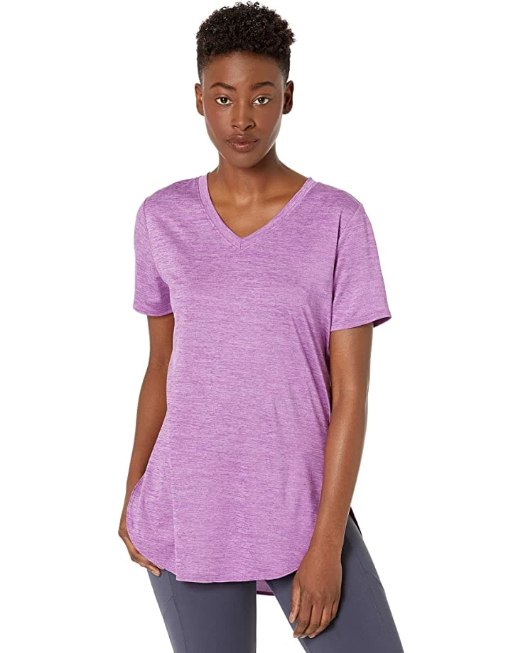 This is something I’ve looked long for – a shirt that is comfortable, moves with me, easy to put on, and is LONG enough for me (as I am taller than average for a woman). IT actually covers me appropriately even when I am reaching up or stretching out (a good thing!). This is the only style at Skechers offered that does ensure my waist/midriff is NOT overexposed (it actually is a good length!)