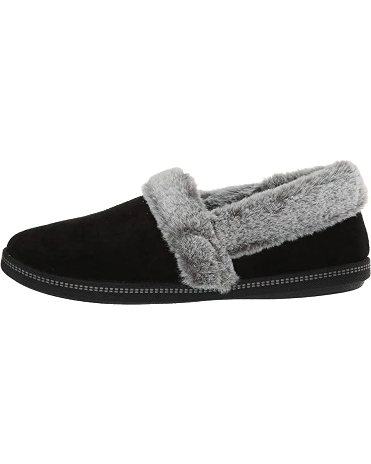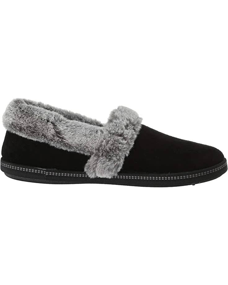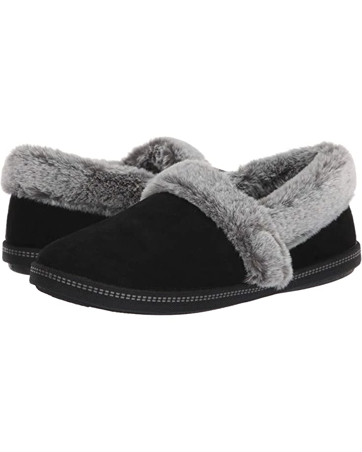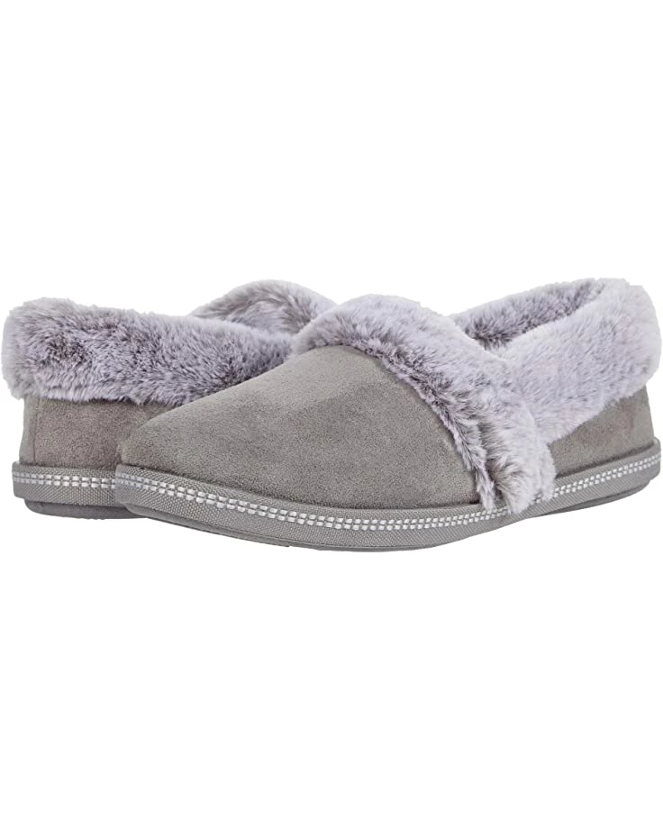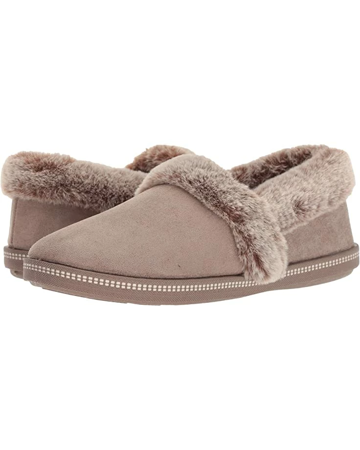 - The SKECHERS® Cozy Campfire – Team Toasty slipper will keep you cozy all season long with a microfiber fabric upper, a suede-like finish, and a plush faux-fur collar.