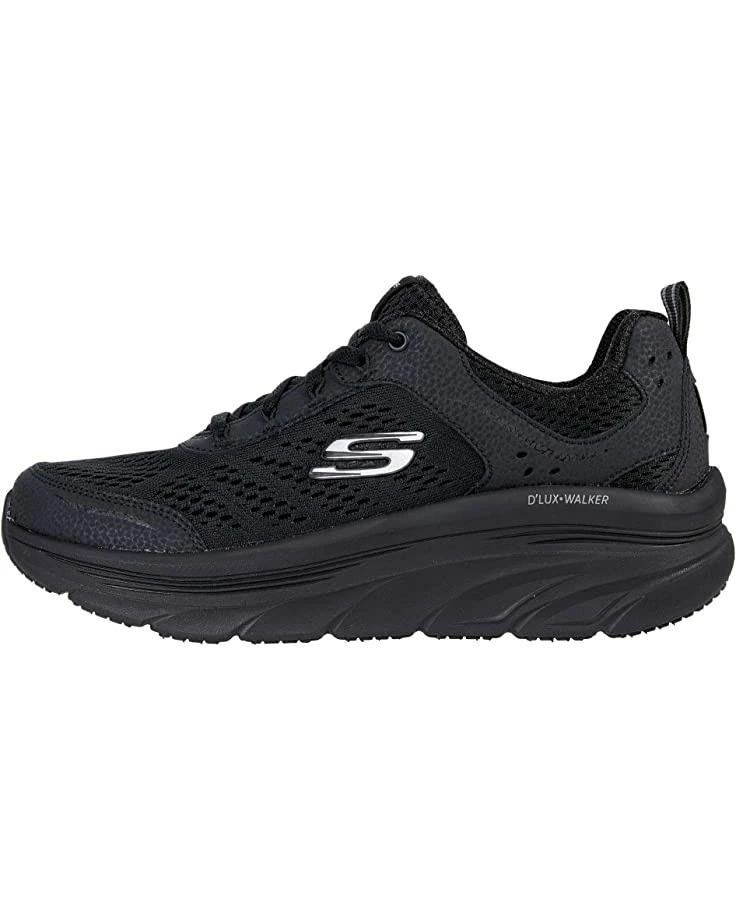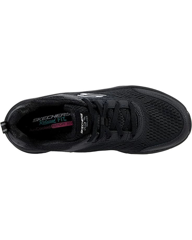 - The SKECHERS® D’Lux Walker – Infinite Motion sneaker offers total comfort in a casual silhouette made of a smooth action leather and mesh fabric upper featuring a cooling perforations and reflective detailing.