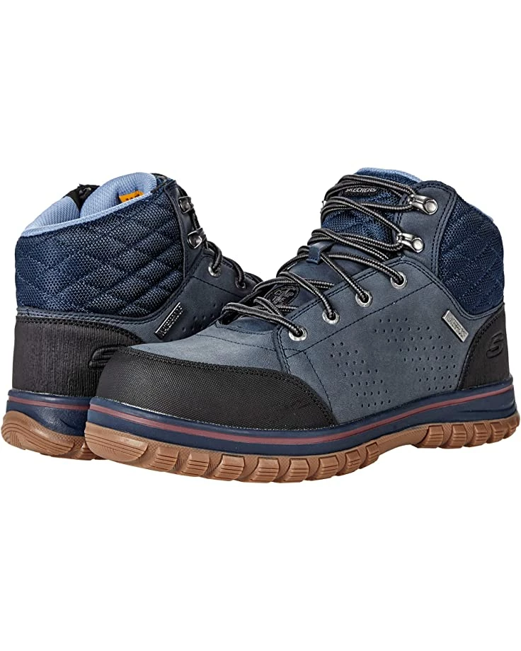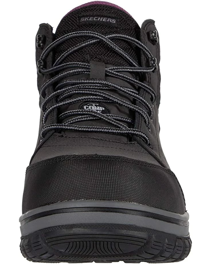 - The SKECHERS® Work McColl Comp Toe work boot has a waterproof and stain-resistant leather upper, synthetic and removable Air-Cooled Memory Foam insole, and safety toe protection for long-lasting durability and comfort that will keep you safe while you’re on the job.