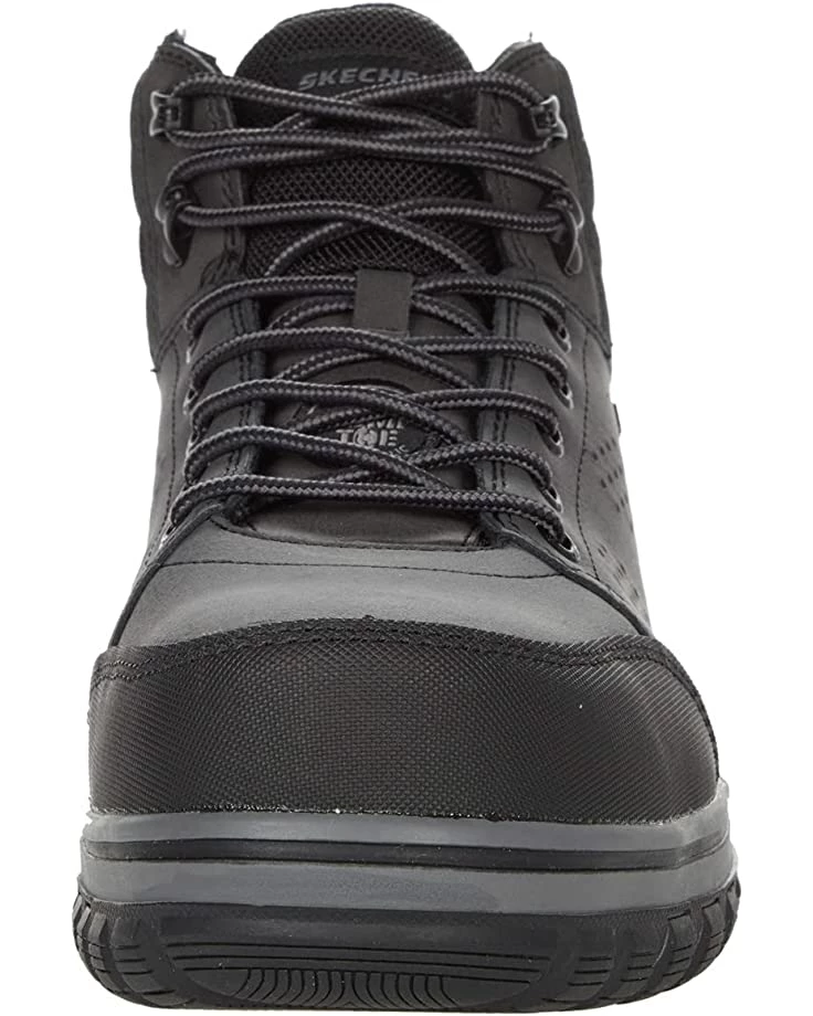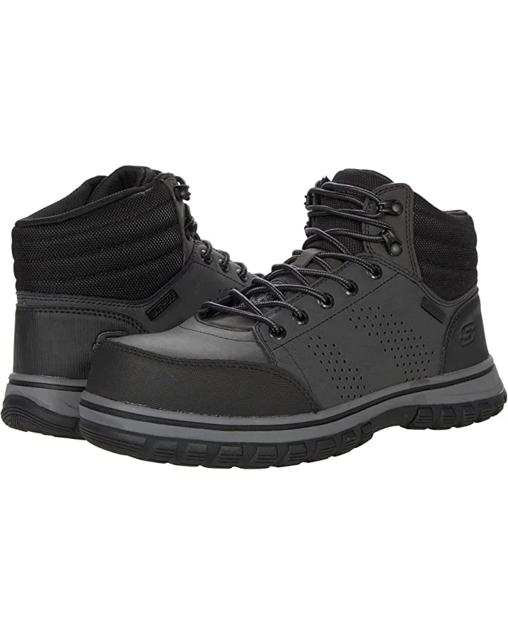 - The SKECHERS® Work McColl-Dassah Composite Toe work boot has a waterproof and stain-resistant leather upper, Memory Foam insole, and safety toe protection for long-lasting durability and comfort that will keep you safe while you’re on the job.