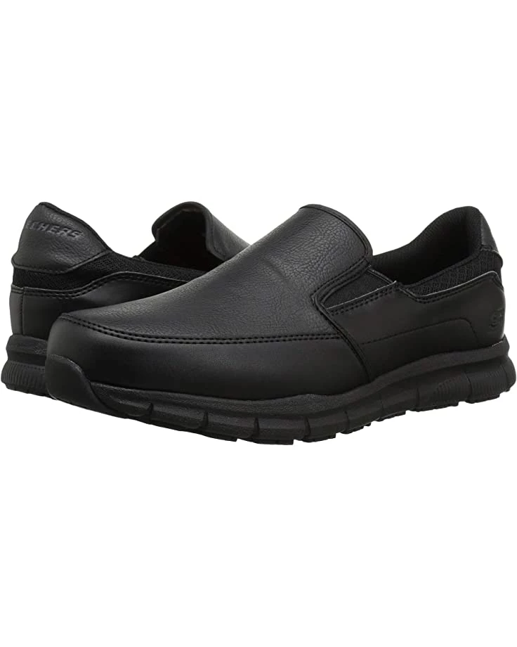 - The flexible fit and reliable slip resistance of the SKECHERS® Work Nampa – Groton slip-on shoe makes sure you get in a good day’s work every single day.